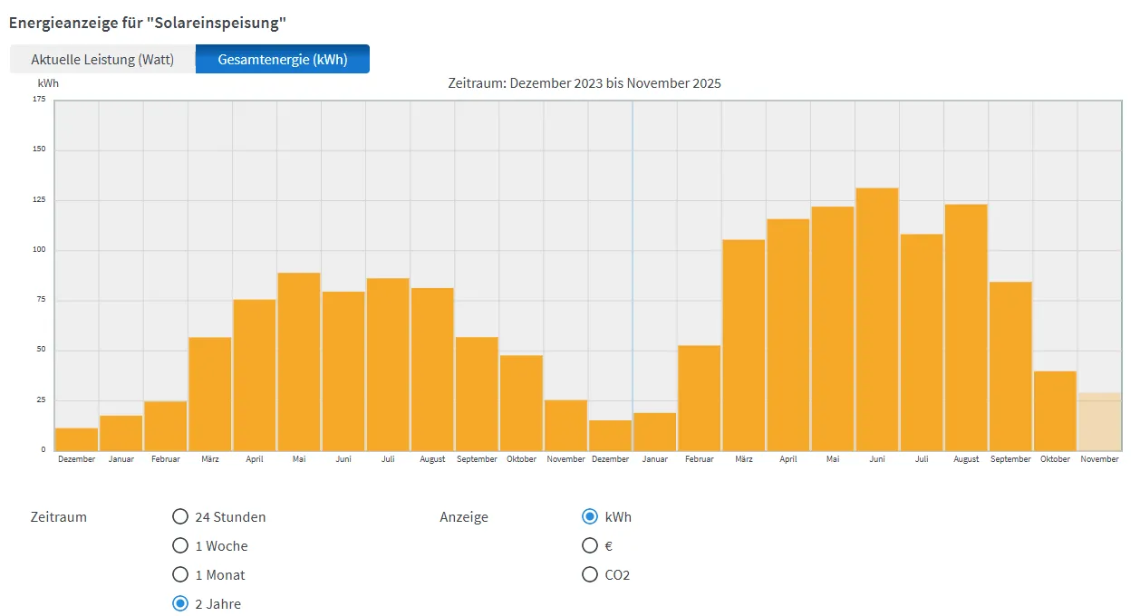 Das alles funktioniert aber nur bei stetigen Sonnenschein und Du brauchst Platz für 90 Solarpanele a 1,762m x 1,134m plus Aufständerung, Fußballfeldgröße.